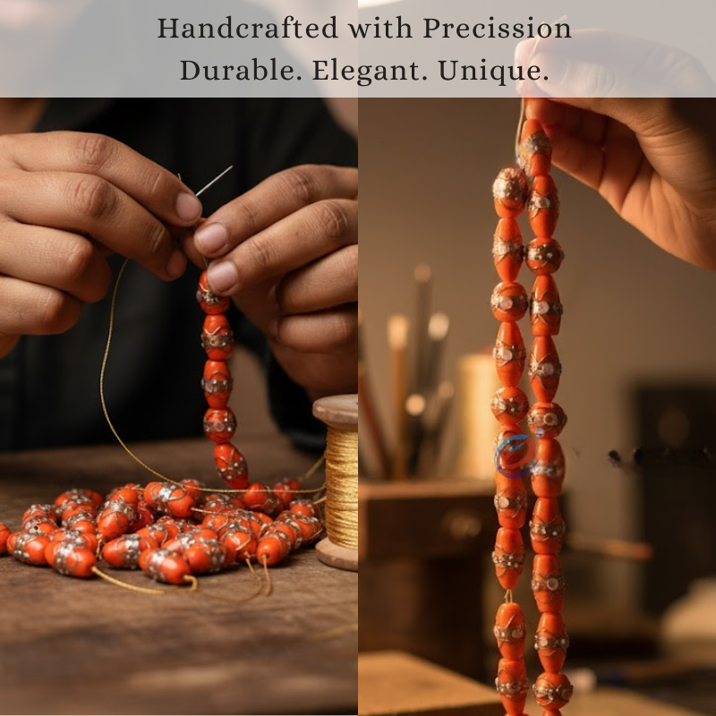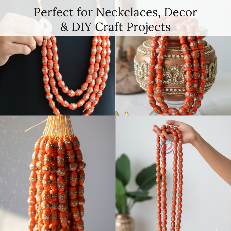 ลูกปัดแก้วทำมือสีส้ม EXCEL EXPORTS ขนาด 8 นิ้ว | สไตล์เค้กแต่งงานแบบศิลปะ | ลูกปัดตกแต่งรูปทรงผสม