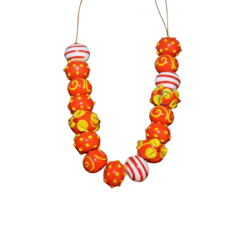 ลูกปัดแก้วหลากสีแบบหลอมร้อน EXCEL EXPORTS ขนาด 16x18 มม. | งานฝีมือ DIY เครื่องประดับลายดอกไม้สีแดง/เหลือง/ขาว | เส้นใยขนาด 8 นิ้ว