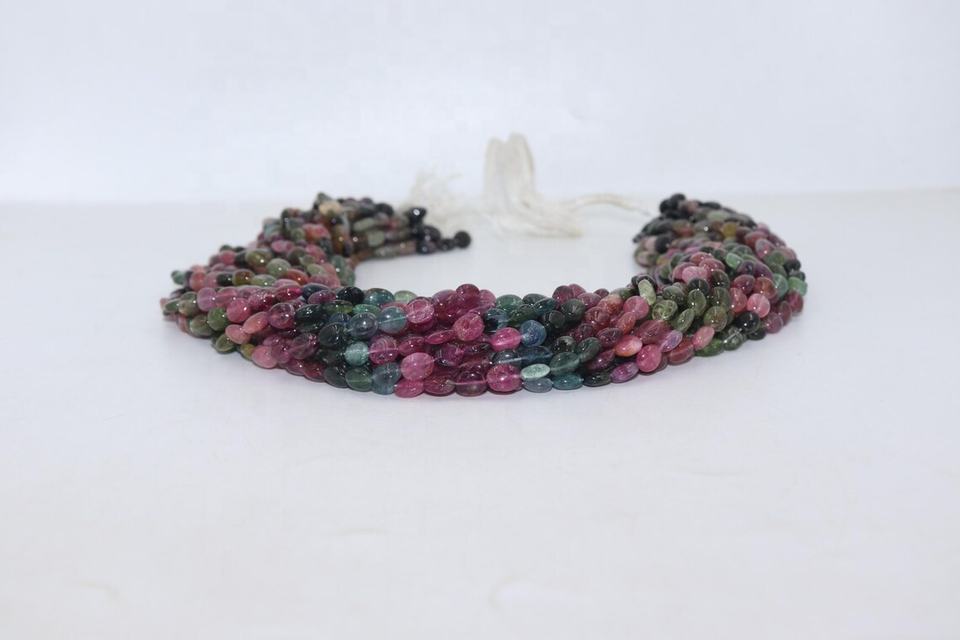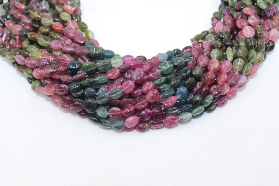 ลูกปัดทัวร์มาลีนหลากสี ทรงรีเรียบ