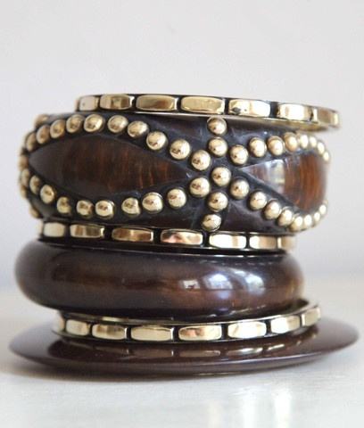 Exlilent สร้อยข้อมือไม้ห้าเหลี่ยมย้อนยุคหมุดกว้างพิเศษออกแบบทำด้วยมือทันสมัยกันน้ำอุปกรณ์เสริมสำหรับทุกเพศ