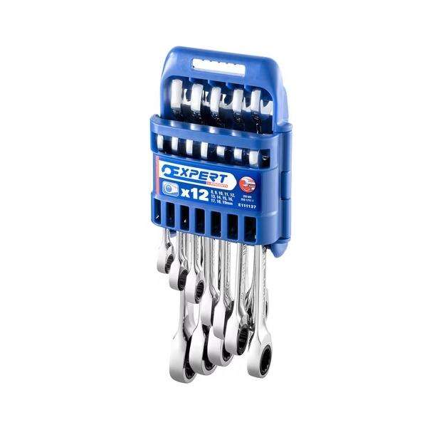 ชุดประแจวงล้อแบน12ตัวชี้วัด12ด้าน E111137ในแร็คพลาสติก8 -19มม.-ประแจ3258951111376
