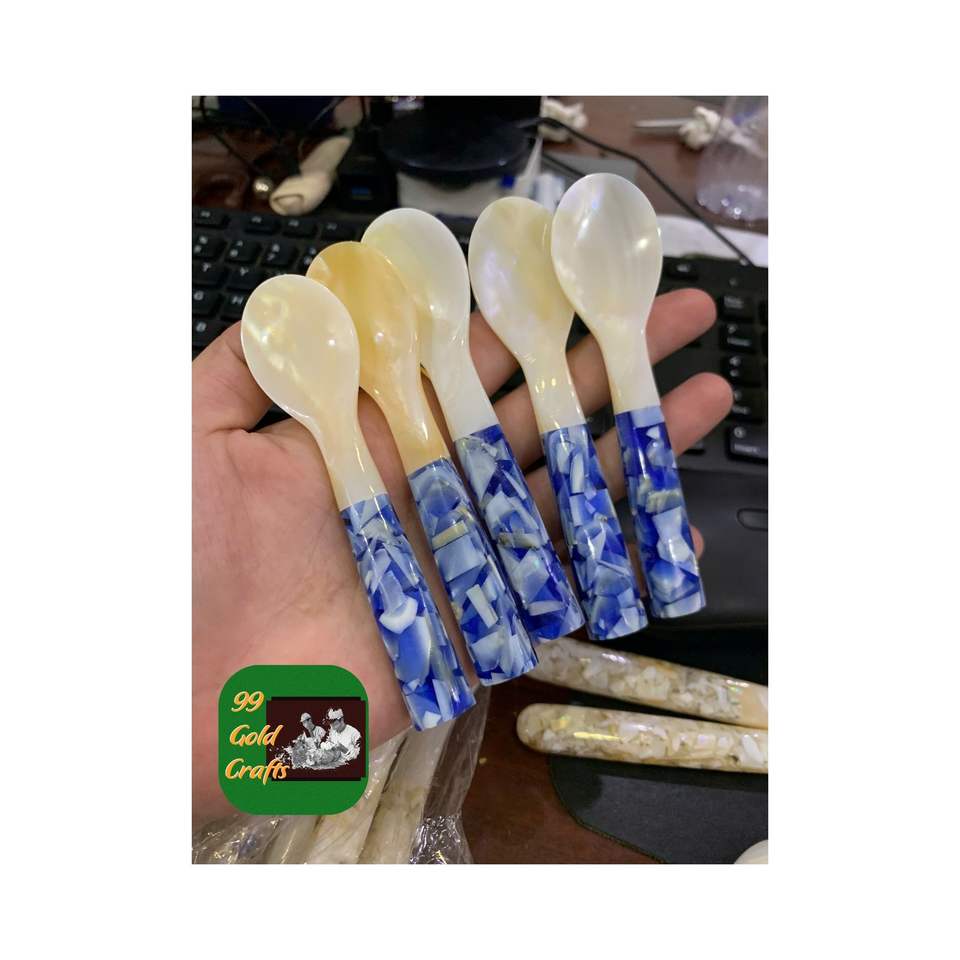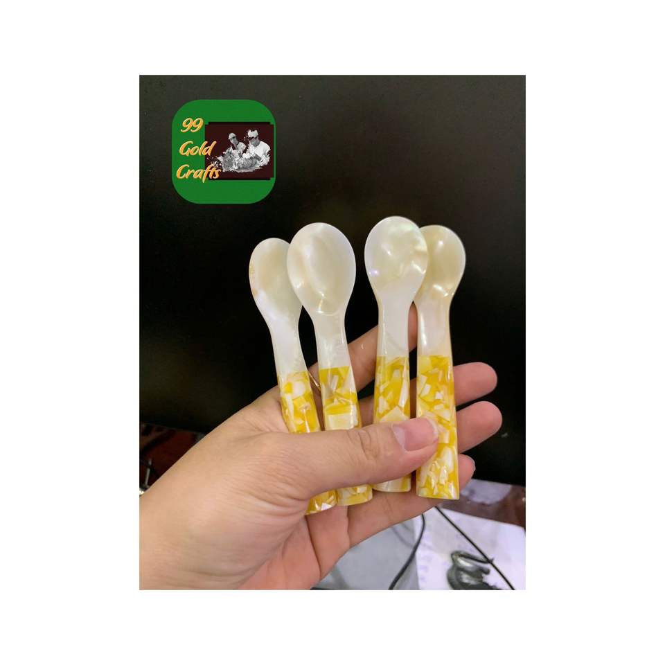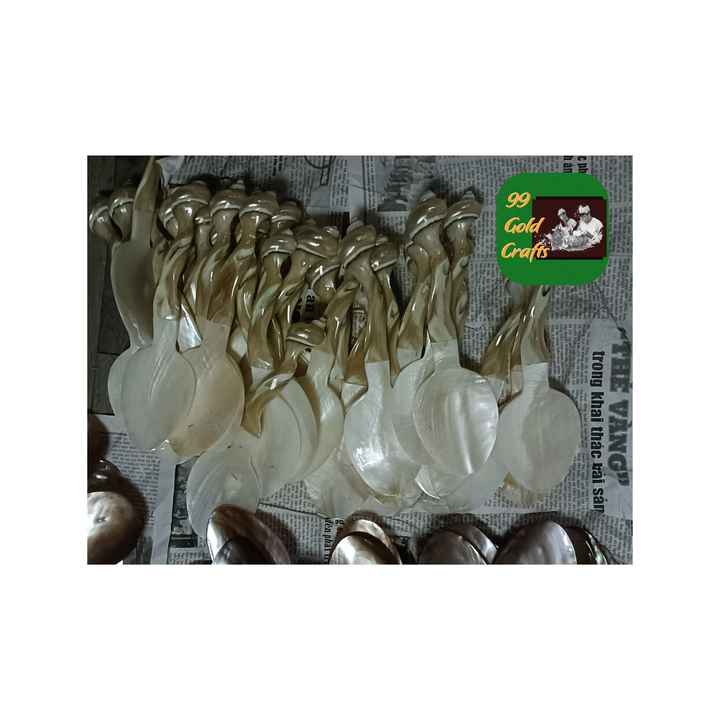 ช้อนเปลือกหอยมุกสีขาวสวยงามช้อนเปลือกหอยทำด้วยมือสำหรับขนมคาเวียร์และกาแฟสไตล์ร้านอาหารสุดหรู