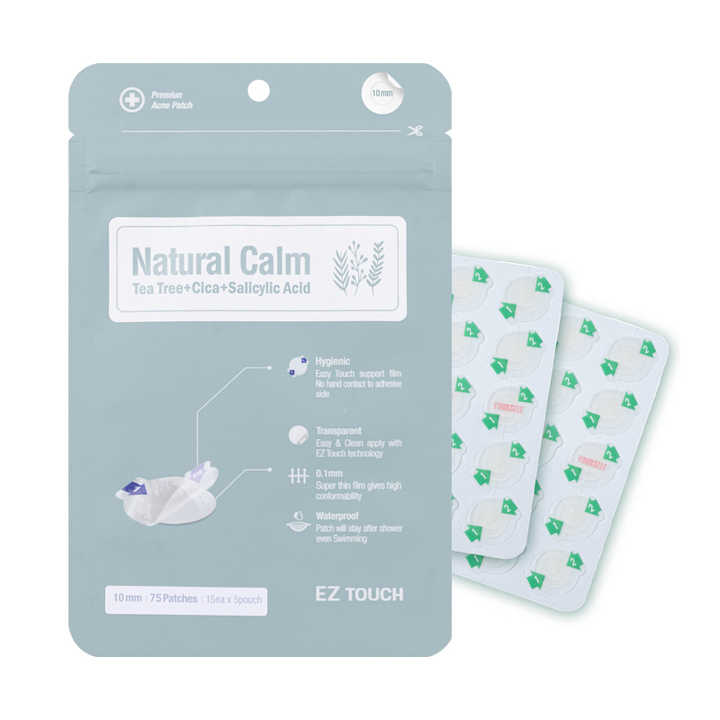 แผ่นแปะสิวใส EZ Touch Natural Calm 75 ชิ้น ขนาด 10 มม. - ซิก้าและทีทรี ไฮโดรคอลลอยด์ สำหรับดูแลจุดสิว