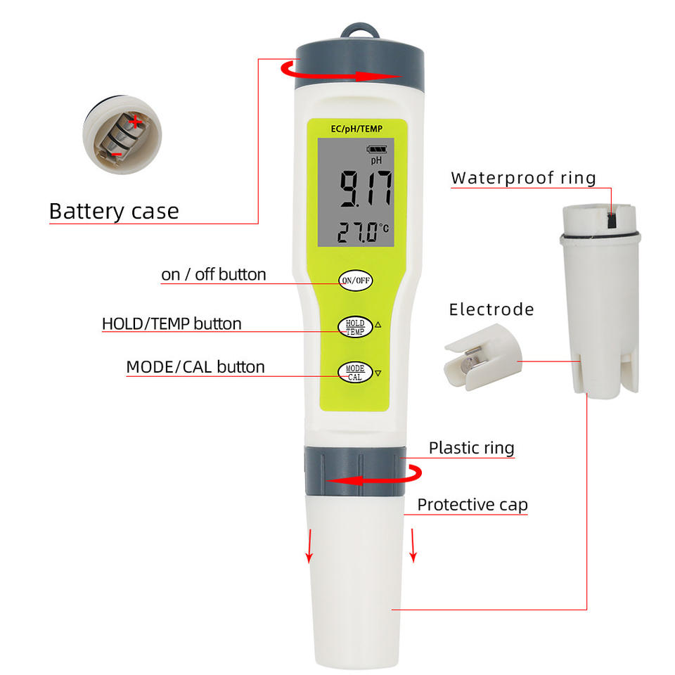 เครื่องวัดคุณภาพน้ำ EZ9902 3-in-1 วัดค่า pH EC อุณหภูมิ แบบพกพา สำหรับใช้ในบ้าน
