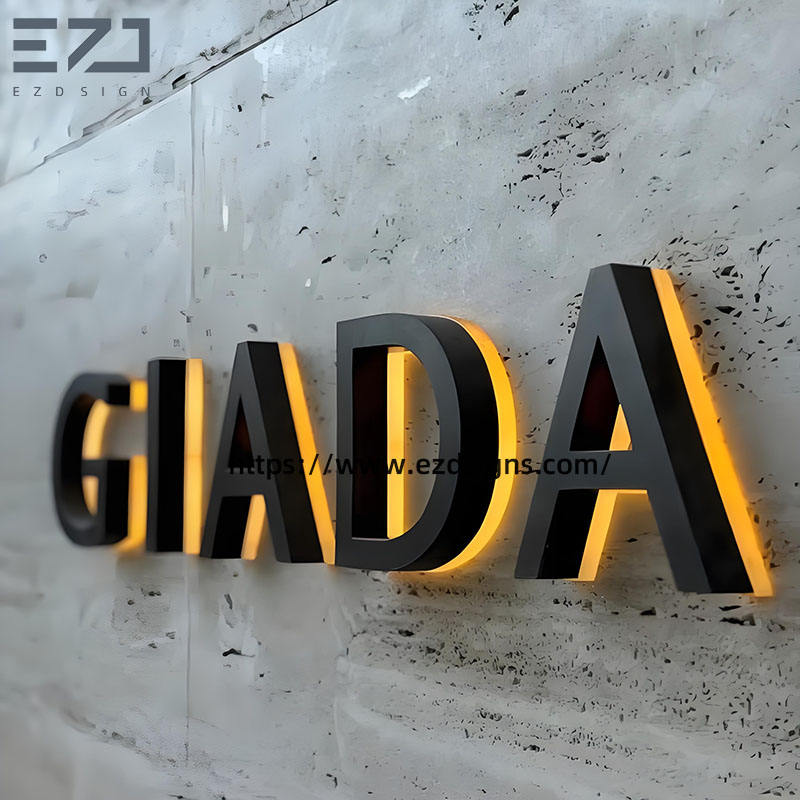 ป้ายไฟ LED 3 มิติ แบบมีไฟแบ็คไลท์ ดีไซน์ฟรีจาก EZD สำหรับติดตั้งภายนอกและภายในอาคาร พร้อมตัวอักษรไฟ สำหรับป้ายร้านค้า แบรนด์เนม บริษัท