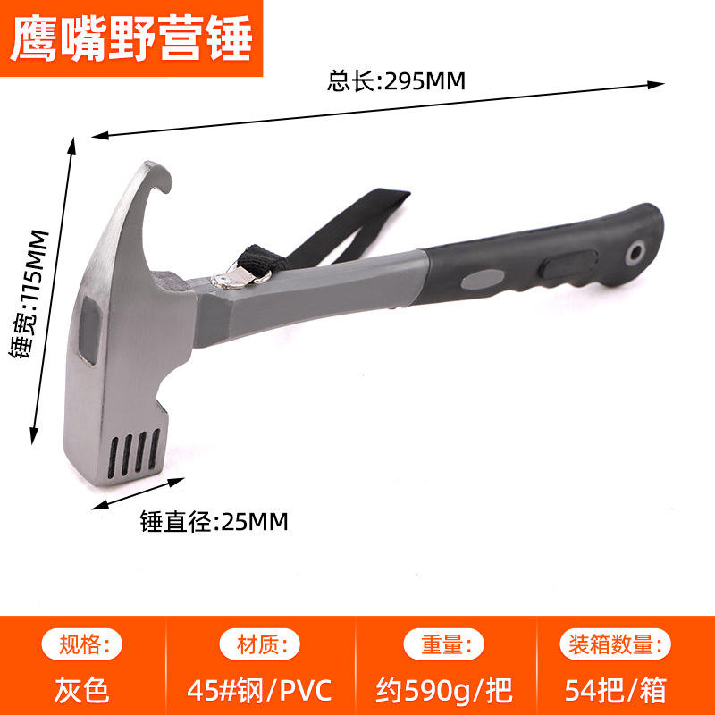 ค้อนตั้งแคมป์ทรงปากนกอินทรี ค้อนเหล็กคาร์บอนสำหรับเต็นท์ สีเทา สีส้ม สีแดง สีน้ำเงิน สีเหลือง สีดำ สีคาเมล ใช้ได้ทุกฤดูกาล สำหรับกิจกรรมกลางแจ้ง