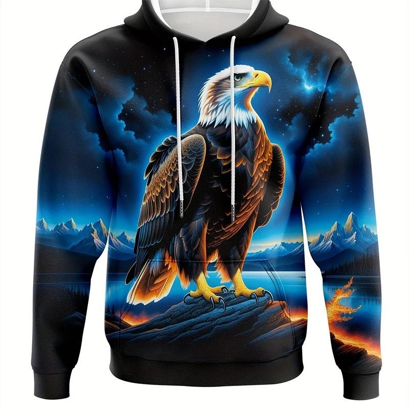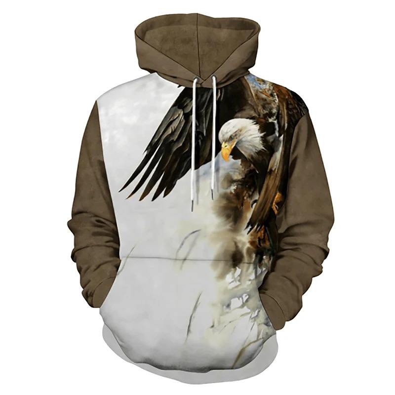 เสื้อฮู้ดลายนกอินทรีพิมพ์ลาย3D ธงชาติอเมริกันสำหรับผู้ชายเสื้อฮู้ดแขนยาวมีฮู้ดเสื้อสวมหัวทรงโอเวอร์ไซส์เสื้อผ้าผู้ชาย