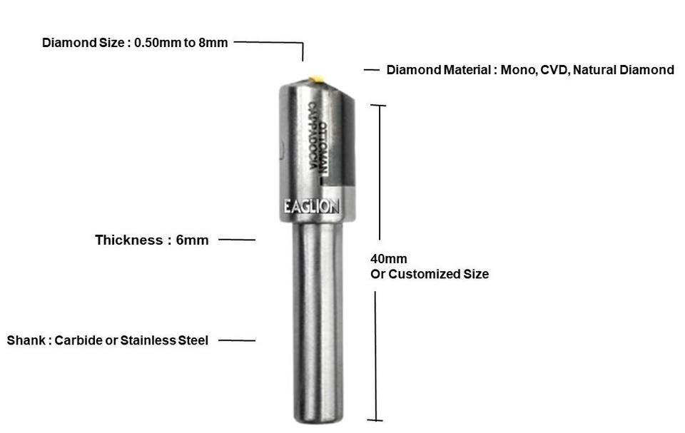 Eaglion CNC ottoman ขนาดพิเศษ0.5มม. 3มม. เครื่องมือเพชรอุปกรณ์เครื่องมือเครื่องประดับสำหรับแหวนเงินทองกำไลก้าน6มม. ขนาดพิเศษ