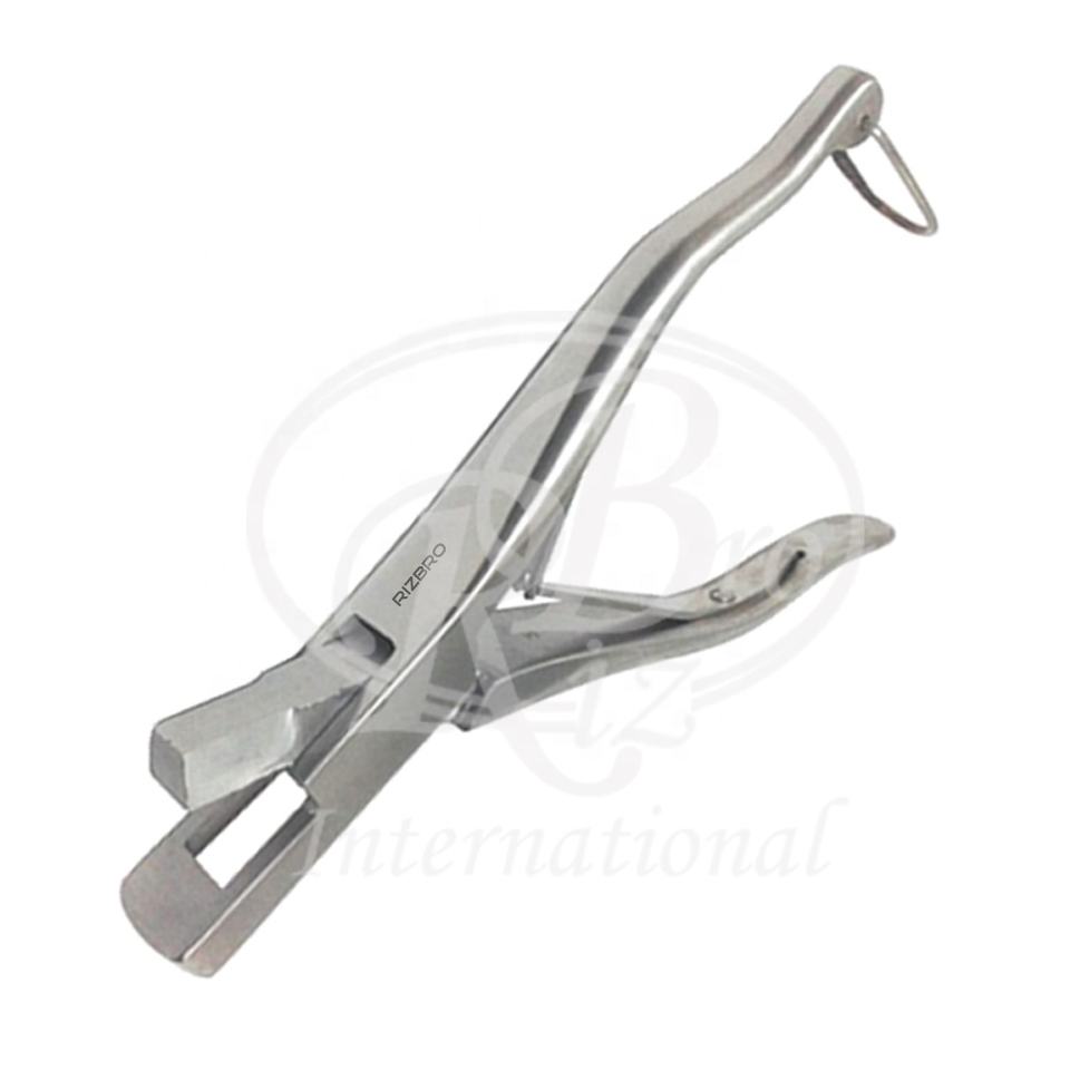 เครื่องตัดหูสัตว์สแตนเลสทรงสี่เหลี่ยม ยี่ห้อ Rizbro International ขนาด 6 นิ้ว ตัดได้ 8 มม. ขนาดเล็ก ใช้ซ้ำได้ ได้รับการรับรองมาตรฐาน ISO/CE สำหรับสัตวแพทย์