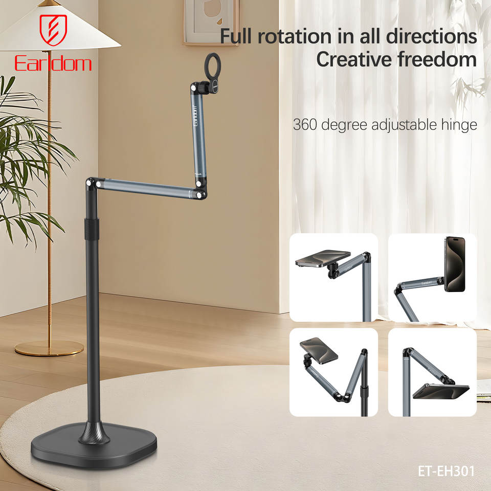 ขาตั้งโทรศัพท์และแท็บเล็ตแบบแม่เหล็กปรับระดับได้ ยี่ห้อ Earldom สำหรับการถ่ายทอดสด ใช้บนเตียง หรือพื้น ขาตั้งโทรศัพท์มือถือแบบยืดหยุ่น