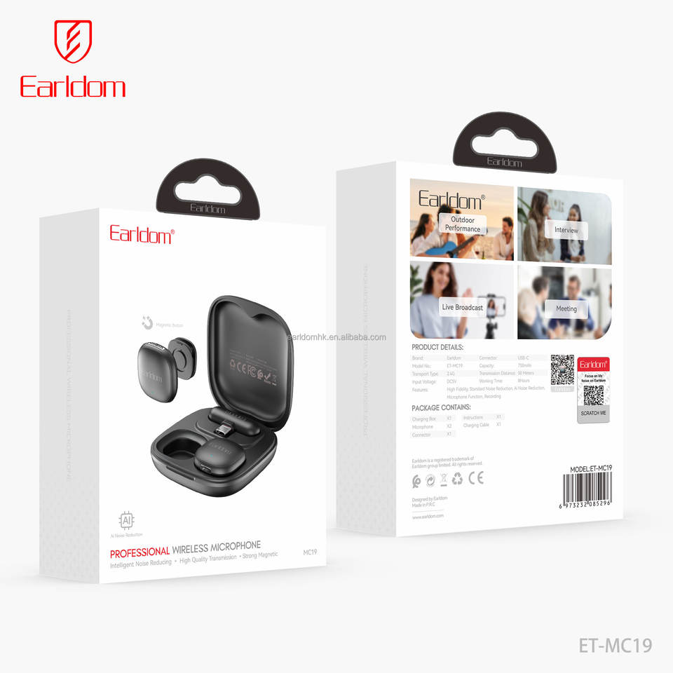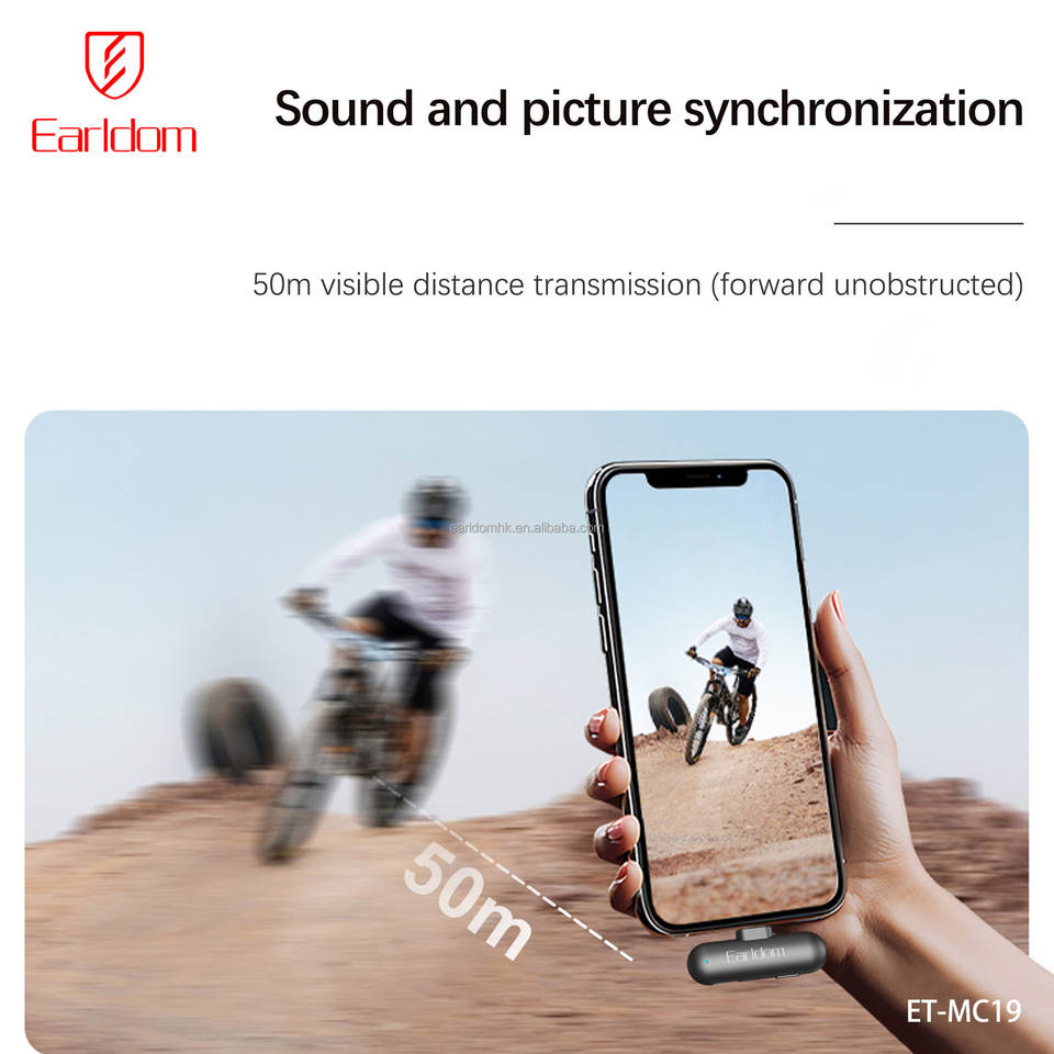 ไมโครโฟนไร้สายขนาดเล็กแบบหนีบปกเสื้อ Earldom Mini Professional สำหรับ iPhone Android ใช้สำหรับไลฟ์สด บันทึกเกมส์ สัมภาษณ์ และวิดีโอบล็อก