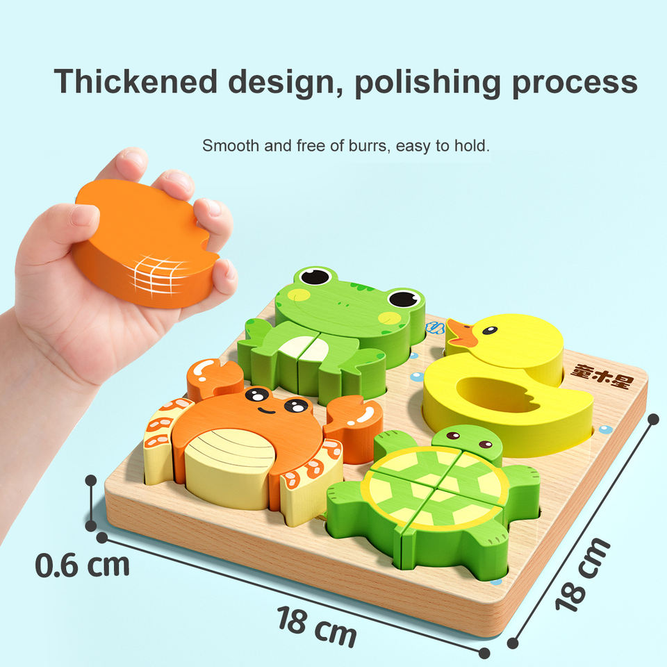 ของเล่นไม้เสริมพัฒนาการเด็กเล็กแบบมอนเตสซอรี่ ตัวต่อไม้ 3 มิติ ลายการ์ตูนสัตว์ สำหรับเด็กอายุ 0-3 ปี
