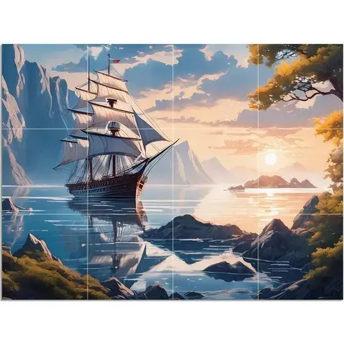 ภาพจิตรกรรมฝาผนังกระเบื้องลายเรือใบสำหรับห้องครัวและห้องน้ำผนังกันน้ำมันกระเด็นสำหรับห้องน้ำ