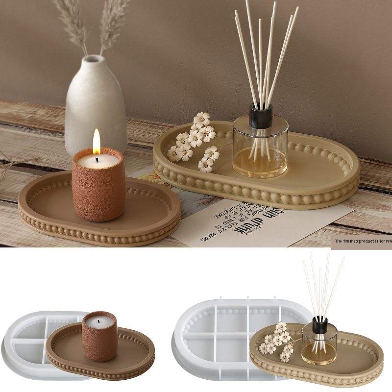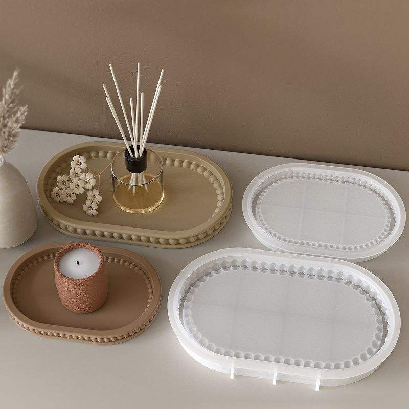 แม่พิมพ์ซิลิโคนแผ่นยิปซั่มอโรม่าถาดลูกปัดทรงรีแบบทำมือแม่พิมพ์เรซินสำหรับตกแต่ง