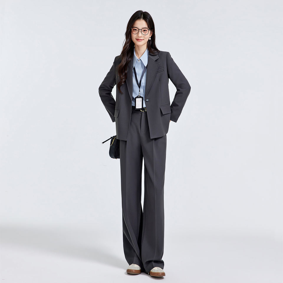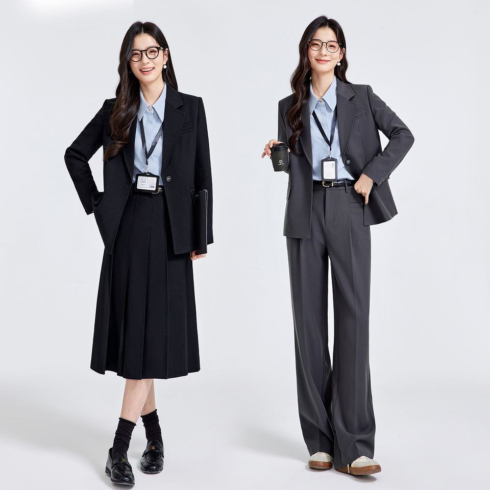 ชุดสูทแขนยาวทรงปกติสำหรับนักศึกษาหญิง ช่วงต้นฤดูใบไม้ผลิ ป้องกันริ้วรอย เหมาะสำหรับการสอบข้าราชการและการสอบเข้าวงการทหาร