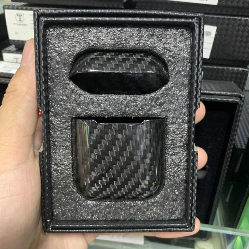 ขายปลีกกล่องหูฟังกรณีบางพิเศษสีดำจริงคาร์บอนไฟเบอร์ฝาครอบป้องกันสำหรับ Airpods 1 2กรณี
