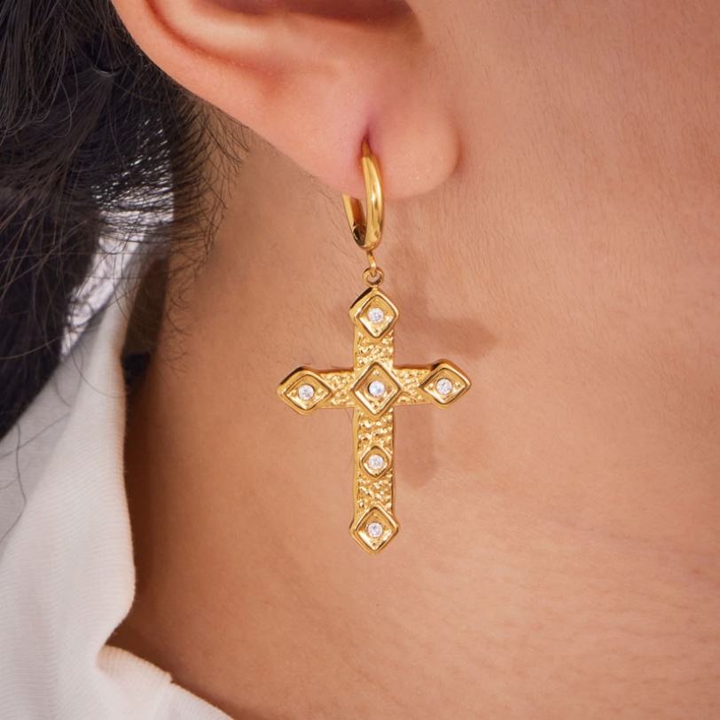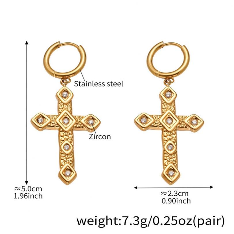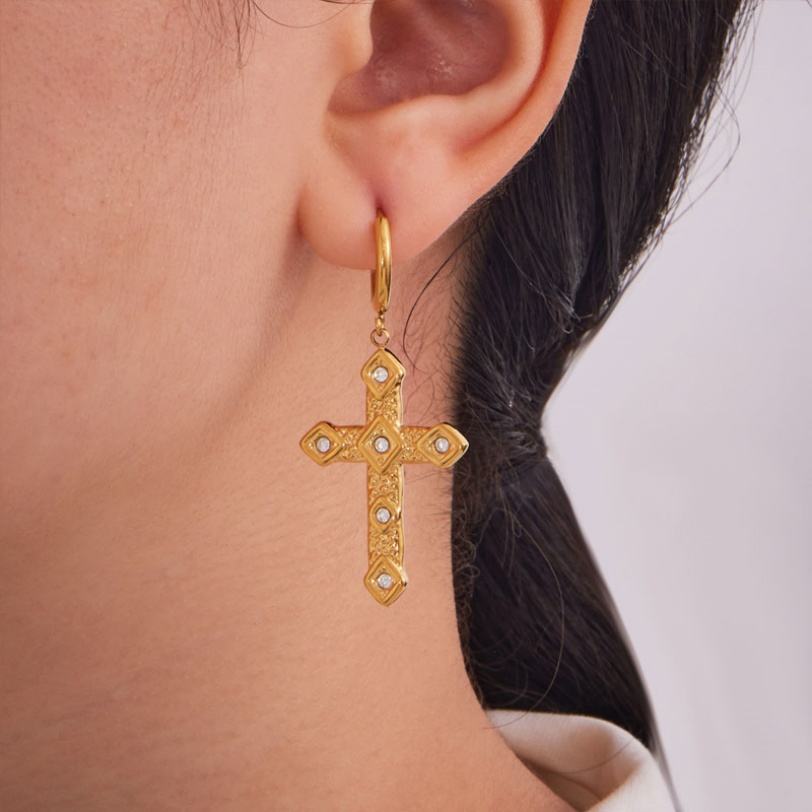 ผู้ผลิตต่างหูแบบติดหู สแตนเลส ต่างหูคลาสสิก แฟชั่นรูปกากบาท ประดับเพชรซิร์คอน ต่างหูเสริมสิริมงคล เครื่องประดับสำหรับผู้หญิง