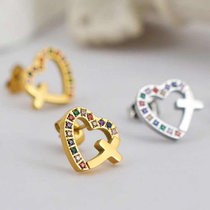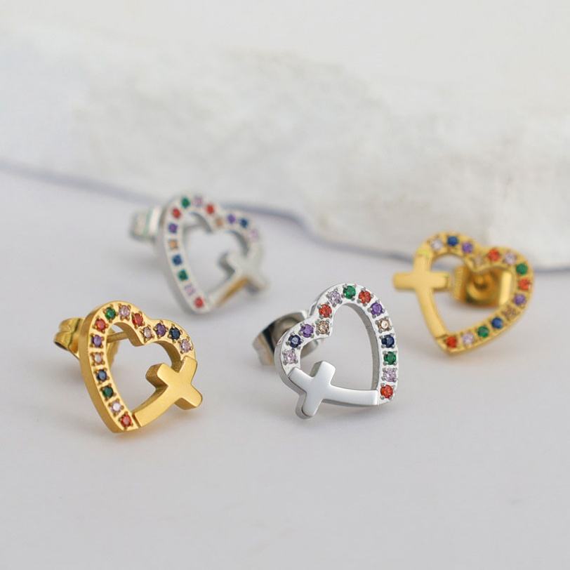 ผู้ผลิตต่างหูแบบติดหู สแตนเลส ต่างหูคลาสสิก แฟชั่นรูปหัวใจ ต่างหูเพชรซิคอน เครื่องประดับสำหรับผู้หญิง