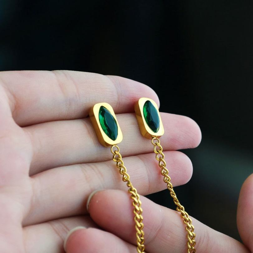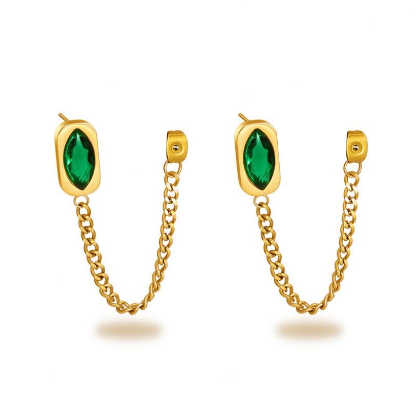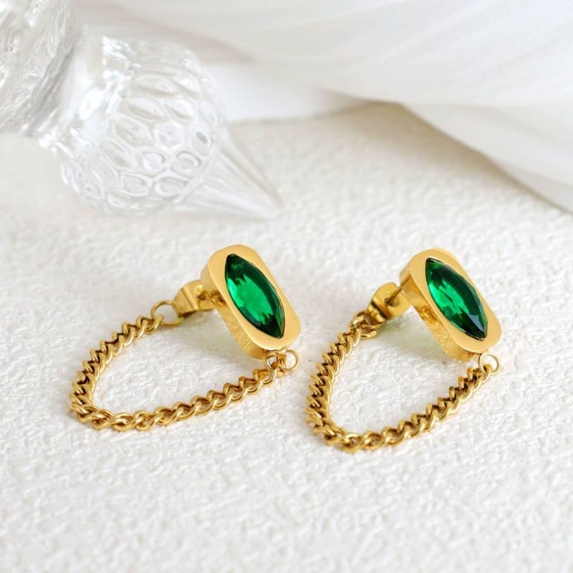 ผู้ผลิตต่างหูแบบติดหู ต่างหูสแตนเลสคลาสสิก ต่างหูระย้าพู่มรกต ต่างหูยาวสำหรับผู้หญิง