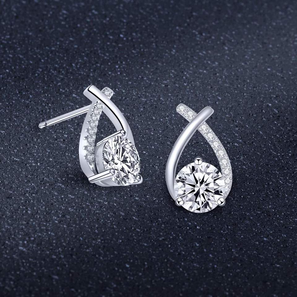 ต่างหูทรงกลมใสต่างหูเพชรต่างหูเงินสเตอร์ลิงสีขาว18K นางเงือกแบบมินิมอล