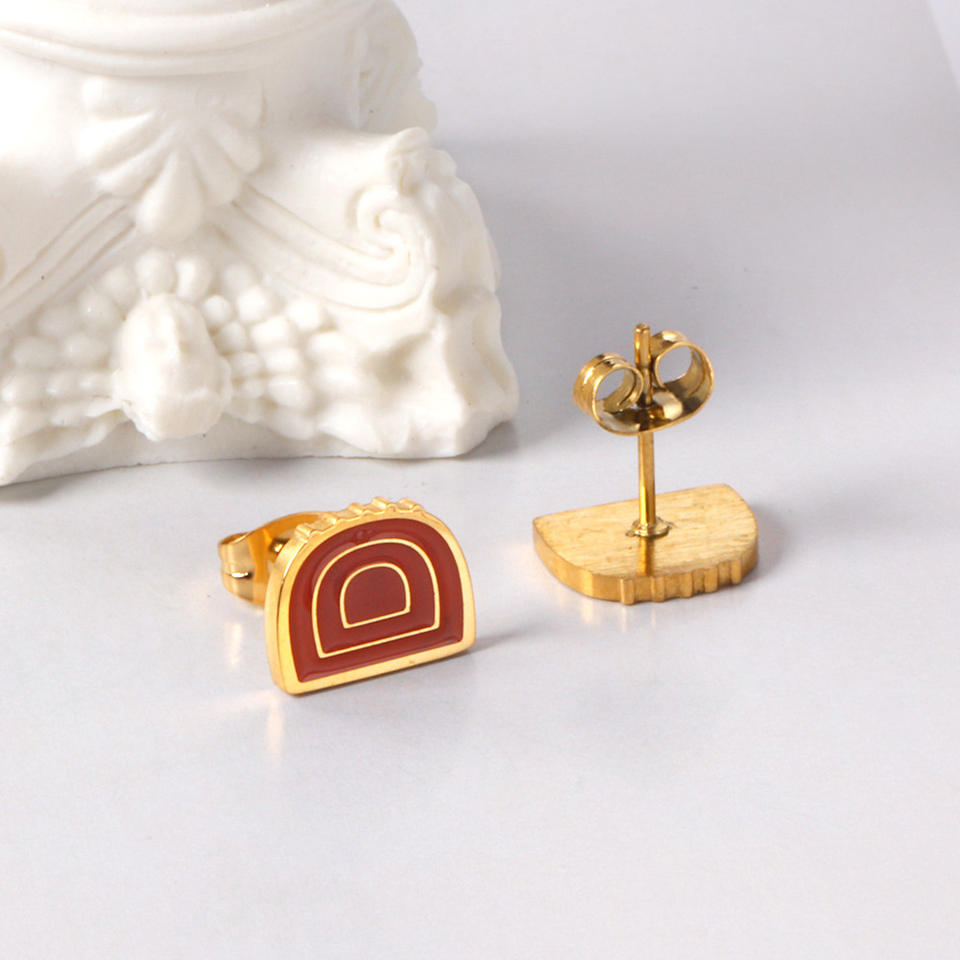 ต่างหูน่ารัก รูปขนมปัง เค้ก ซีรีส์แฟชั่นเด็ก ต่างหูแบบติดหู สแตนเลสชุบทอง 18K ต่างหูเด็กผู้หญิง
