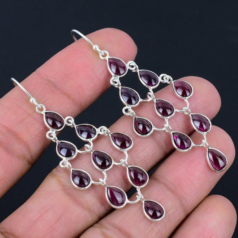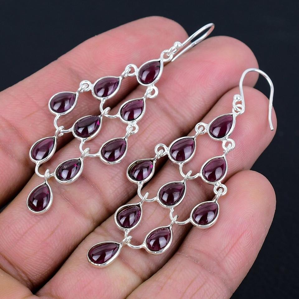 ต่างหูห้อยเงินสำหรับผู้หญิงเครื่องประดับ925แข็งเงินโกเมนพลอยสปินเนอร์ต่างหูเครื่องประดับแฟชั่นสำหรับเด็กผู้หญิง