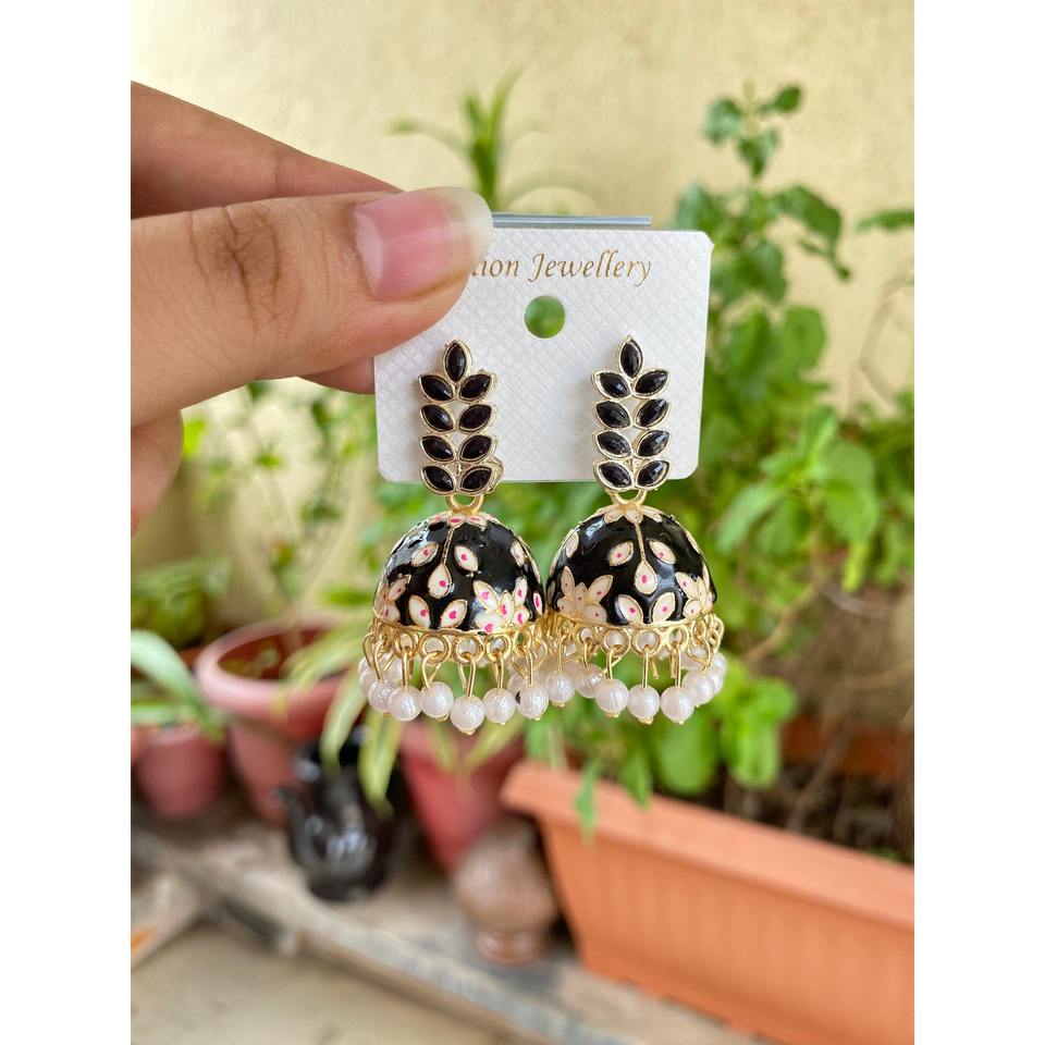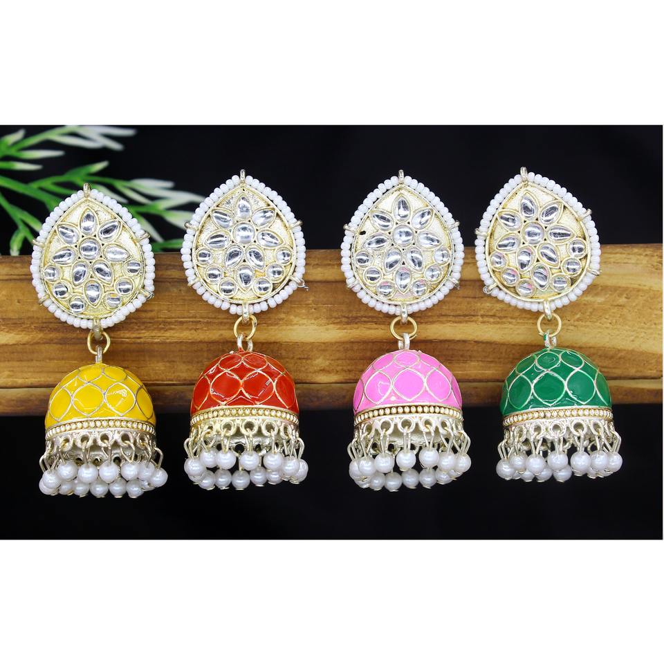 ต่างหูดีไซน์เนอร์ meenakari ลูกปัดหลากสีสไตล์อินเดียต่างหูห่วง Jumkha Bali สำหรับผู้หญิง