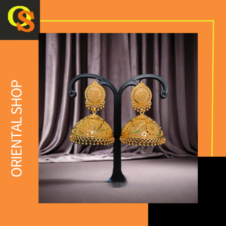 ต่างหูชุดดีไซน์หรูหรา ชุบทอง 22CT สไตล์จุมก้า เครื่องประดับสำหรับผู้หญิง ผลิตโดยผู้ส่งออก