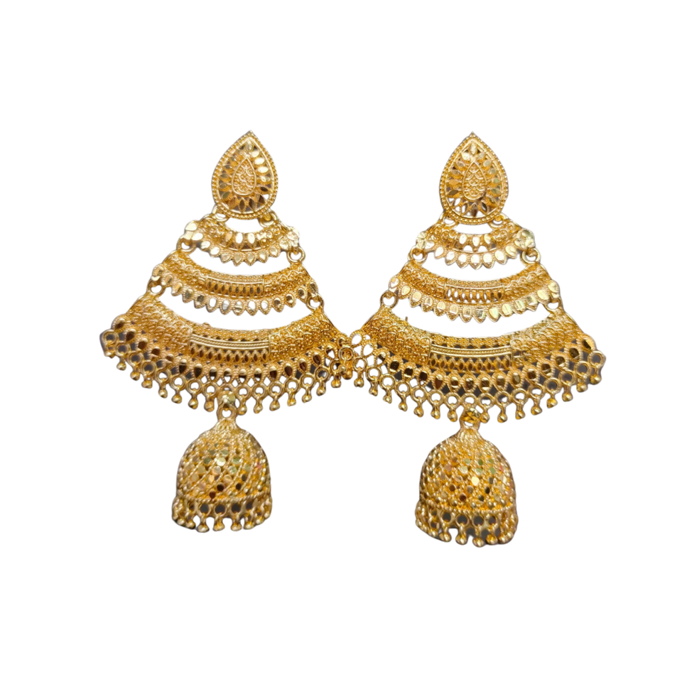 ชุดต่างหูที่มีดีไซน์เป็นเอกลักษณ์22CT ต่างหูชุบทองแบบ Jhumka สำหรับผู้หญิงที่สวมใส่โดยผู้ส่งออก