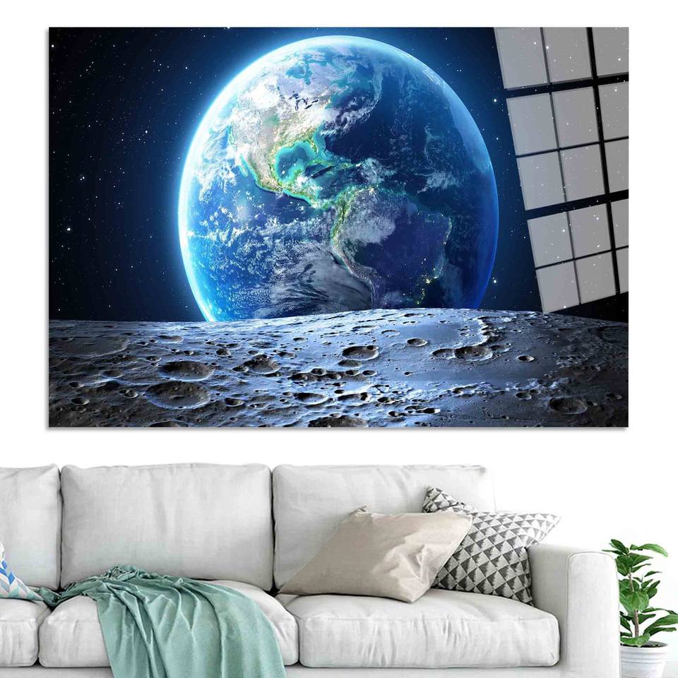 ภาพพิมพ์บนผ้าใบลายโลกและดวงจันทร์: ศิลปะตกแต่งผนังลายทิวทัศน์อวกาศ, ศิลปะกระจกเทมเปอร์