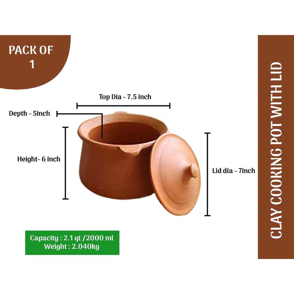Earthen Clay Cooking Pot / Porridge Pot - 2000 ml
