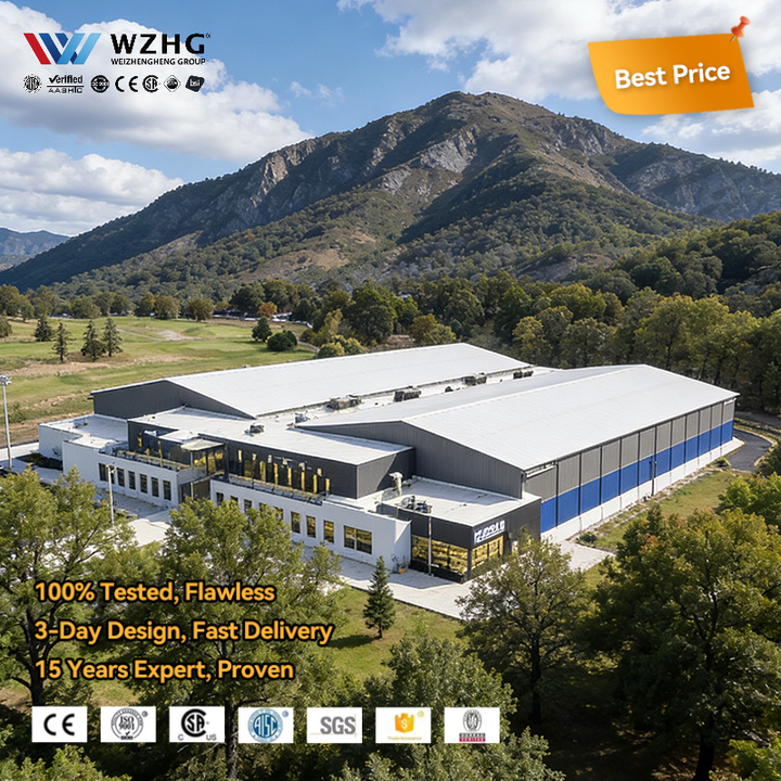 อาคารโครงสร้างเหล็กฉนวนมืออาชีพสำหรับสนามฟุตบอล สถานที่กีฬา โครงสร้างแบบไม่มีคาน ระยะการใช้งาน 50 ปี