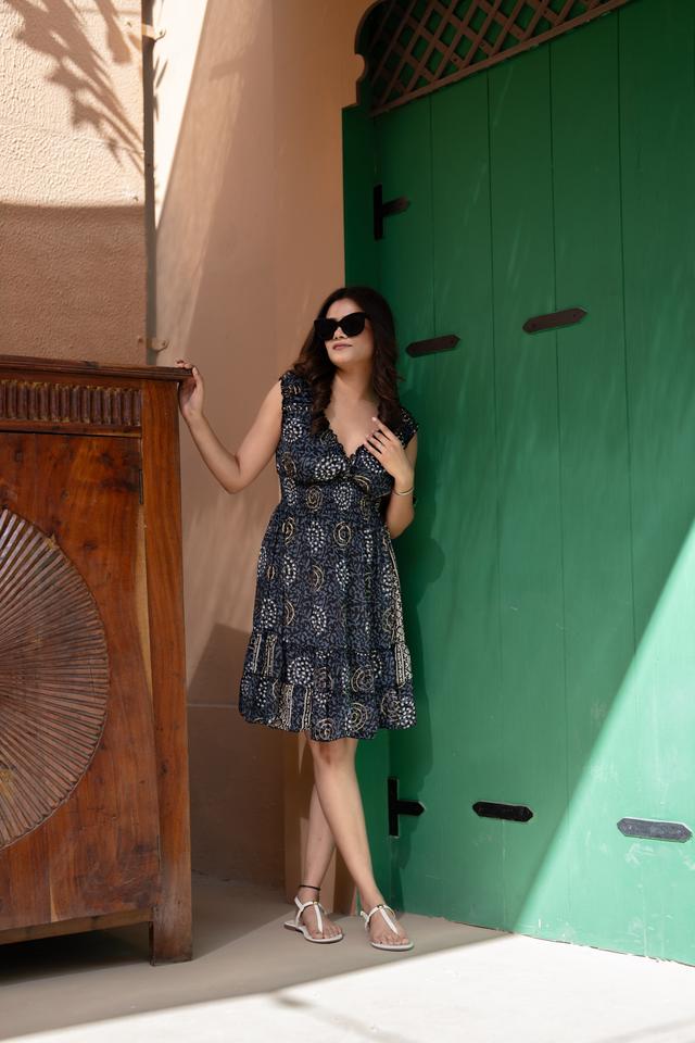 เดรสพิมพ์ลายโลกแบบนามธรรม คอวี ความยาวปานกลาง โทนสีอ่อน แขนพอง เอวธรรมชาติ ทรงเอไลน์ เป็นมิตรกับสิ่งแวดล้อม เหมาะสำหรับฤดูร้อน