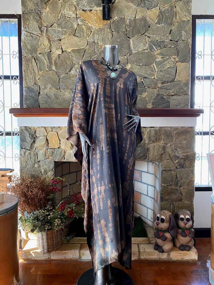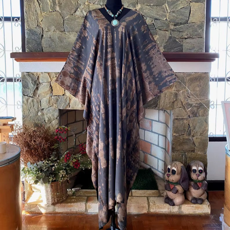 ชุดเดรสคาฟทันผ้าเรยอนย้อมสีแบบชิโบริสไตล์ญี่ปุ่น ไซส์พลัส ทรงโบฮีเมียน ใส่สบาย เหมาะสำหรับใส่ไปเที่ยวพักผ่อน สำหรับผู้หญิง