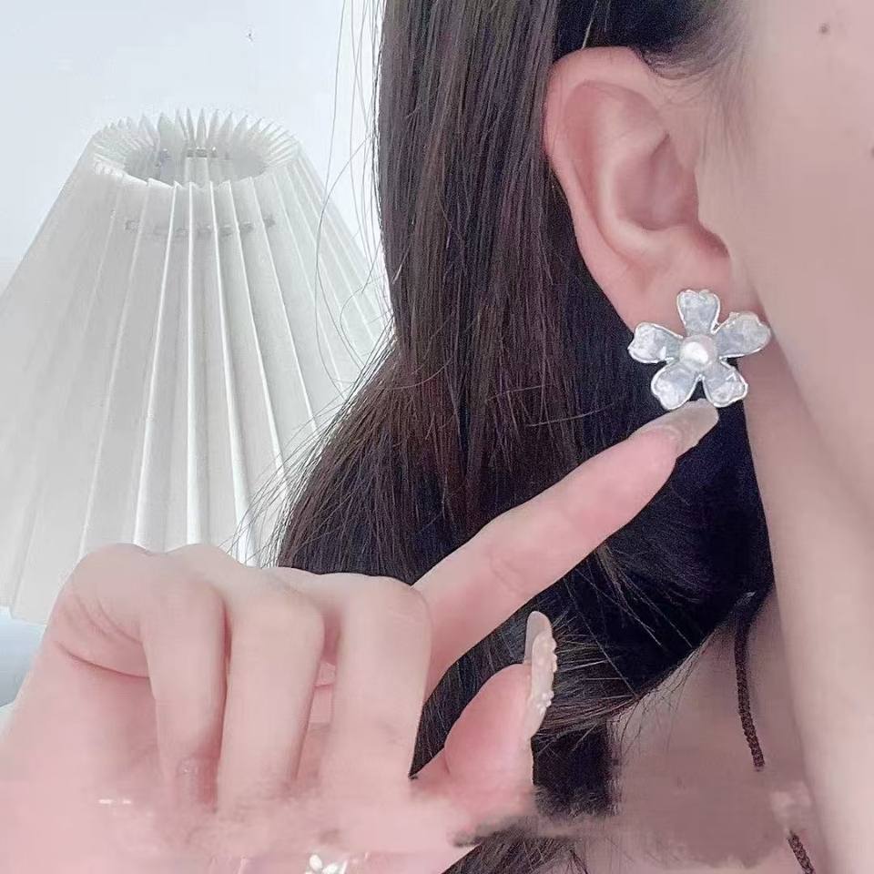 ต่างหูมุกดีไซน์เรียบหรู ดูแพง ดีไซน์ดอกไม้คริสตัลโลกน้ำแข็ง คุณภาพสูง