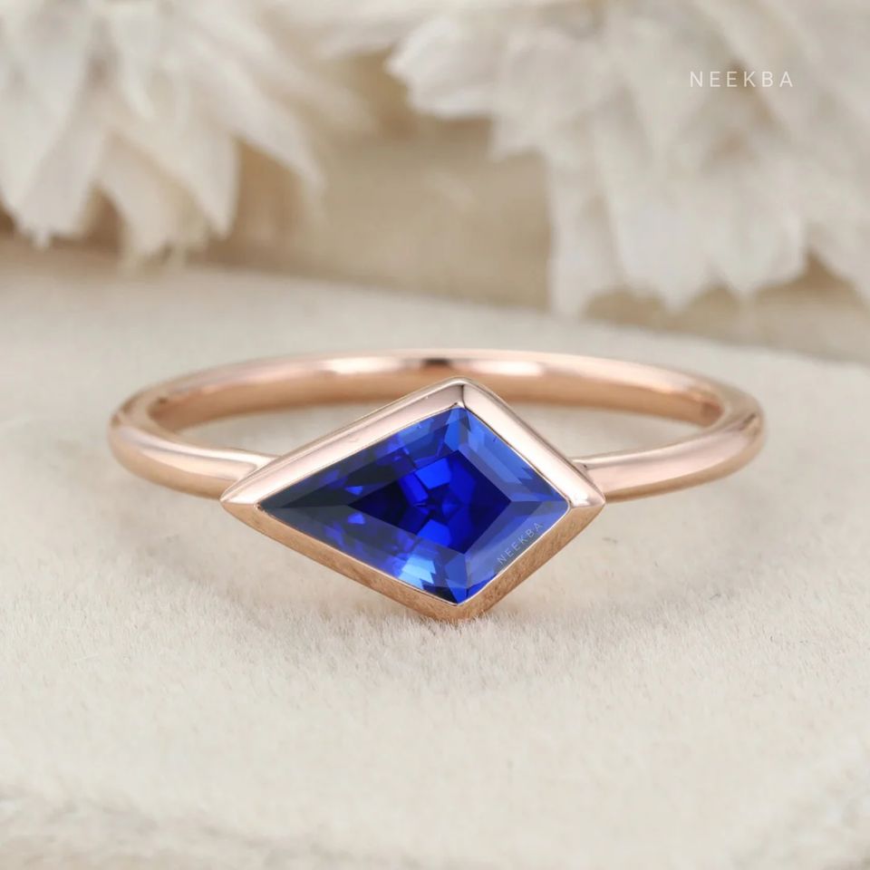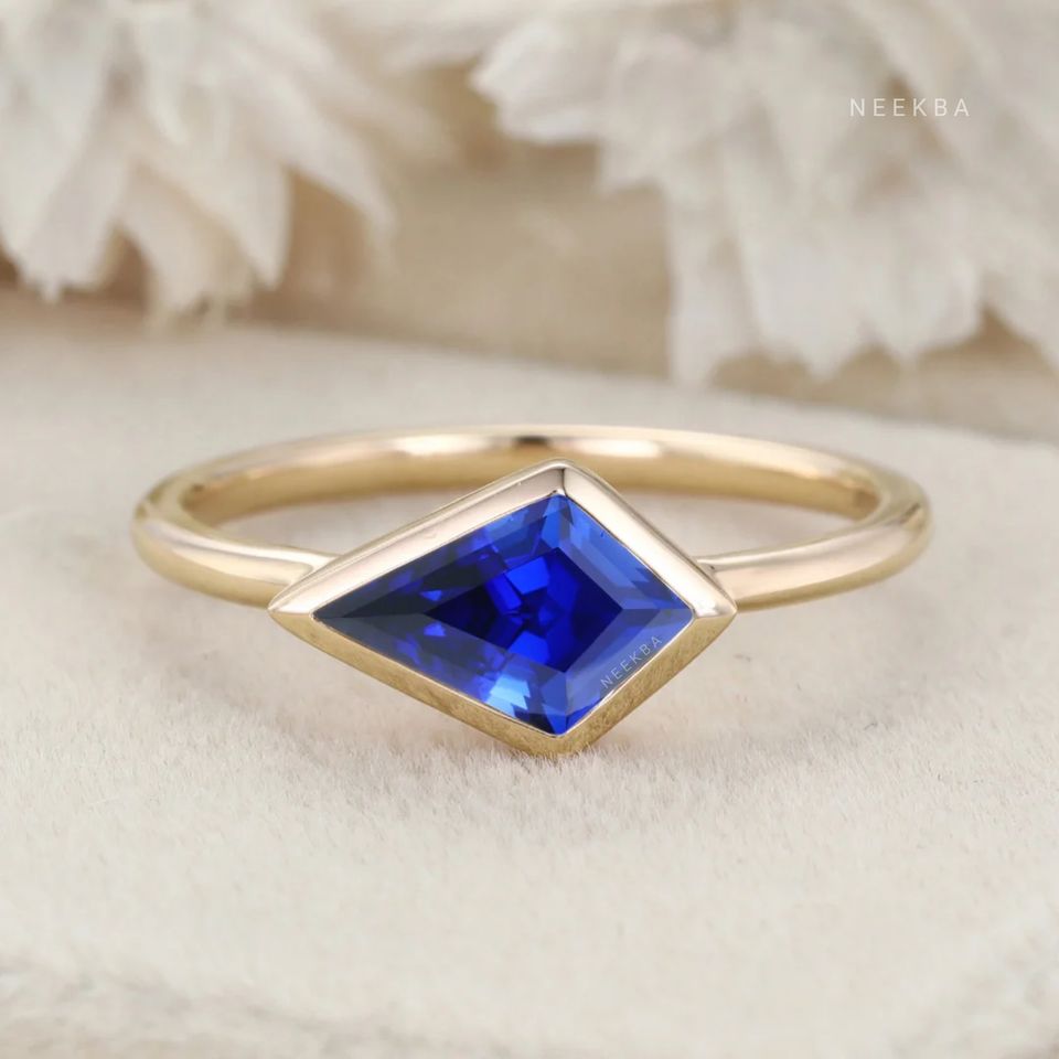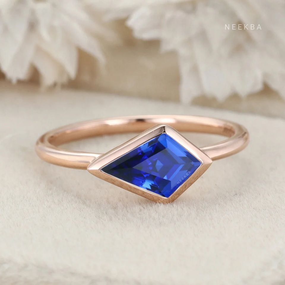 ชุดว่าวแบบตะวันออกตะวันตกแหวนเงิน925แซฟไฟร์ที่ปลูกในห้องปฏิบัติการแหวนหมั้นสไตล์อาร์ตเดคโคพร้อมตัวเลือกการเปลี่ยนพลอย