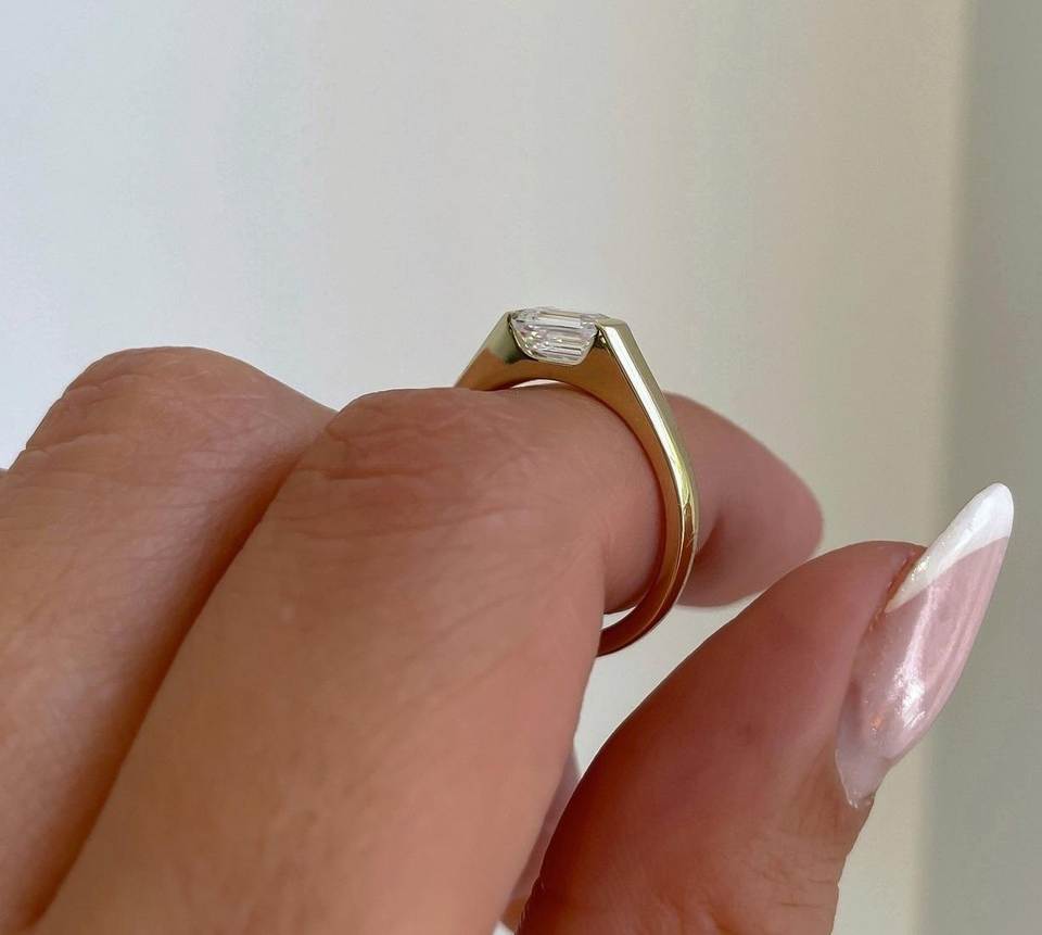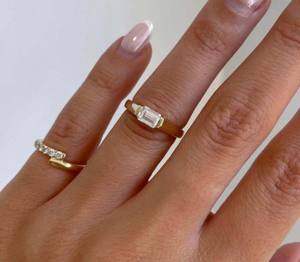 East West Emerald Cut Lab Grown Diamond Solitaire Ring 0.42 Ct CVD Created Bridal Engagement Ring Fine Jewelry Factory Wholesale