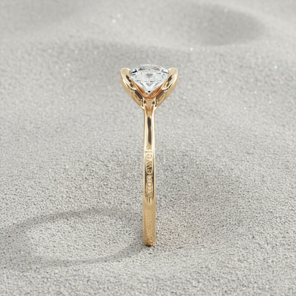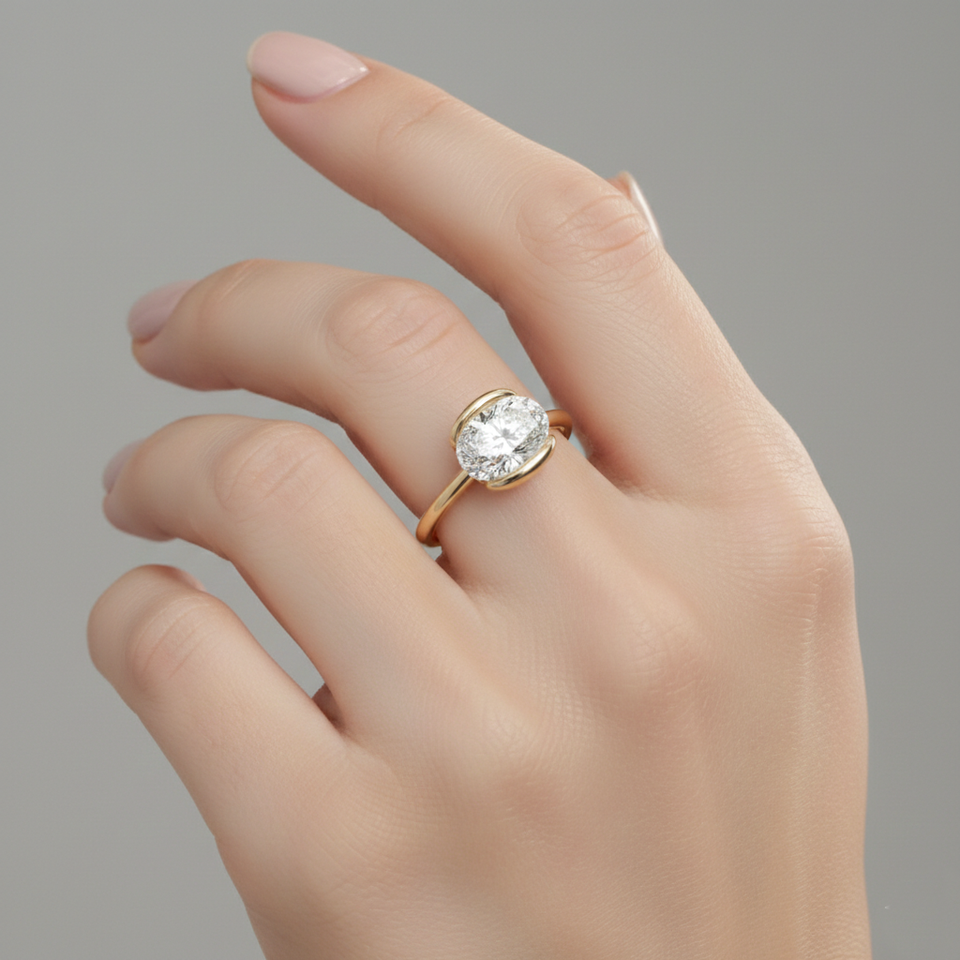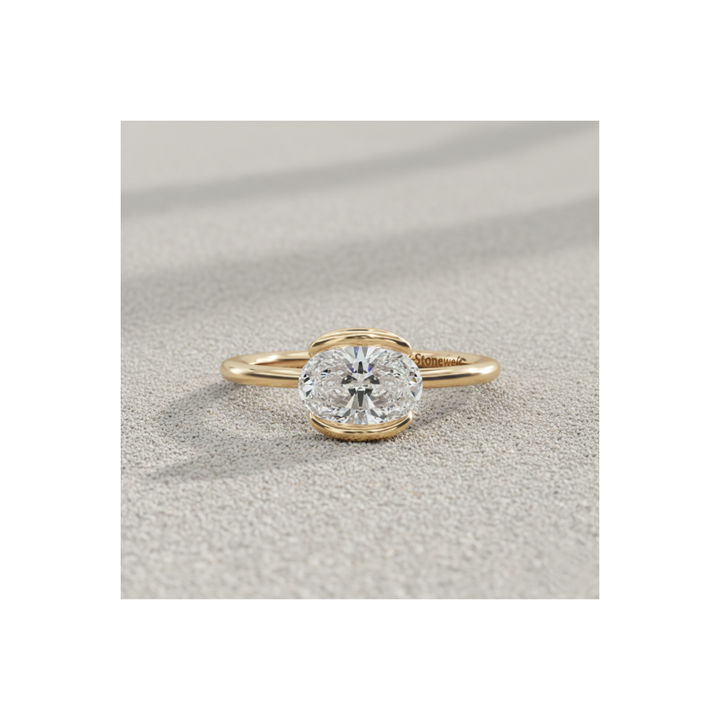 แหวนหมั้นแบบเซอร์โคเนียครึ่งวงขอบทองคำแท้ | เพชรที่ได้รับการรับรองจาก IGI ผลิตในห้องปฏิบัติการ | ข้อเสนอแบบมินิมอลสมัยใหม่