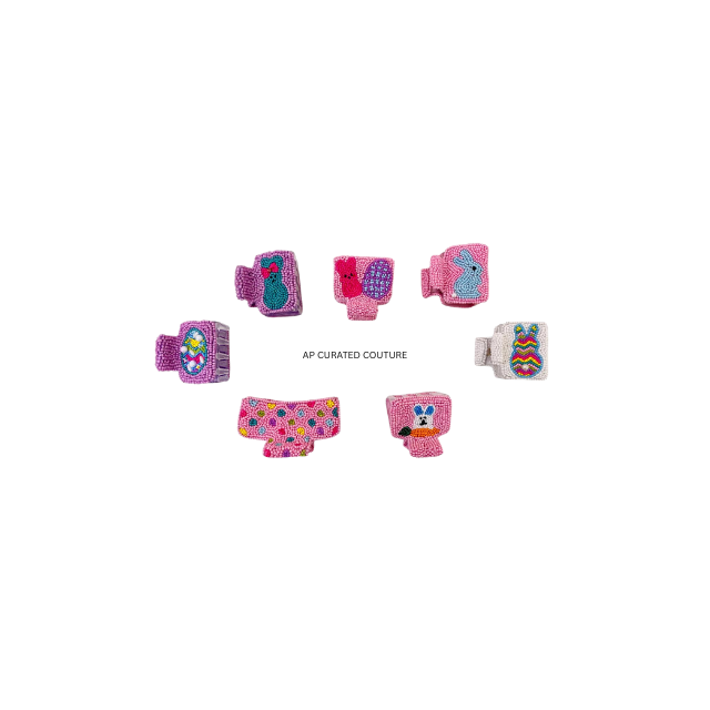 กิ๊บติดผมรูปโบว์กระต่ายอีสเตอร์ ผ้าคุณภาพสูง งานปักลายแบบกำหนดเอง น่ารัก ทำด้วยมือจากอินเดีย