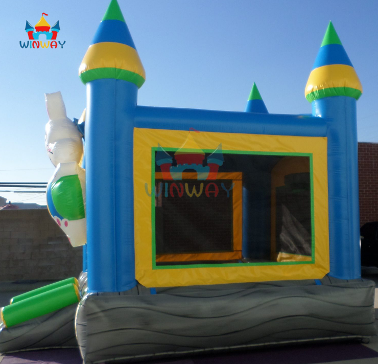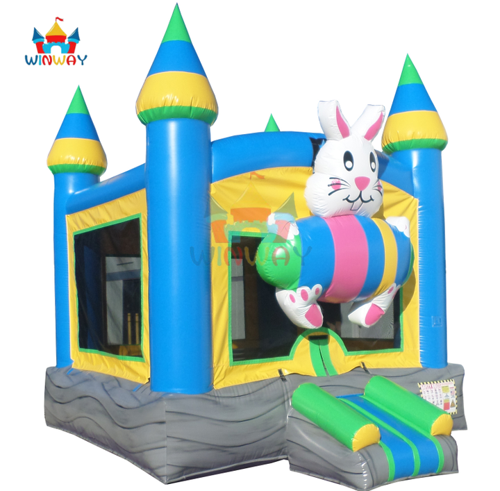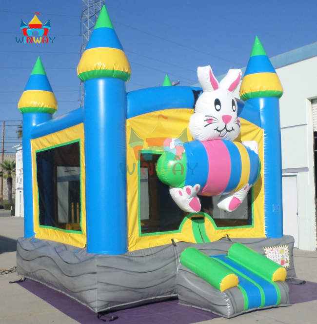 บ้านลมเป่าลมรูปกระต่ายอีสเตอร์พร้อมสไลเดอร์ - ปราสาทเด็กเล่นธีมปราสาทสำหรับงานปาร์ตี้ฤดูใบไม้ผลิและเล่นในสวนหลังบ้าน