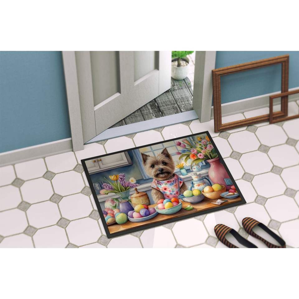 พรมเช็ดเท้าอีสเตอร์ Cairn Terrier สำหรับตกแต่งพรมเช็ดเท้ากันลื่นในร่มกลางแจ้งซักได้พรมปูพื้นต่ำสำหรับทางเข้าประตูหน้า24H x 36W