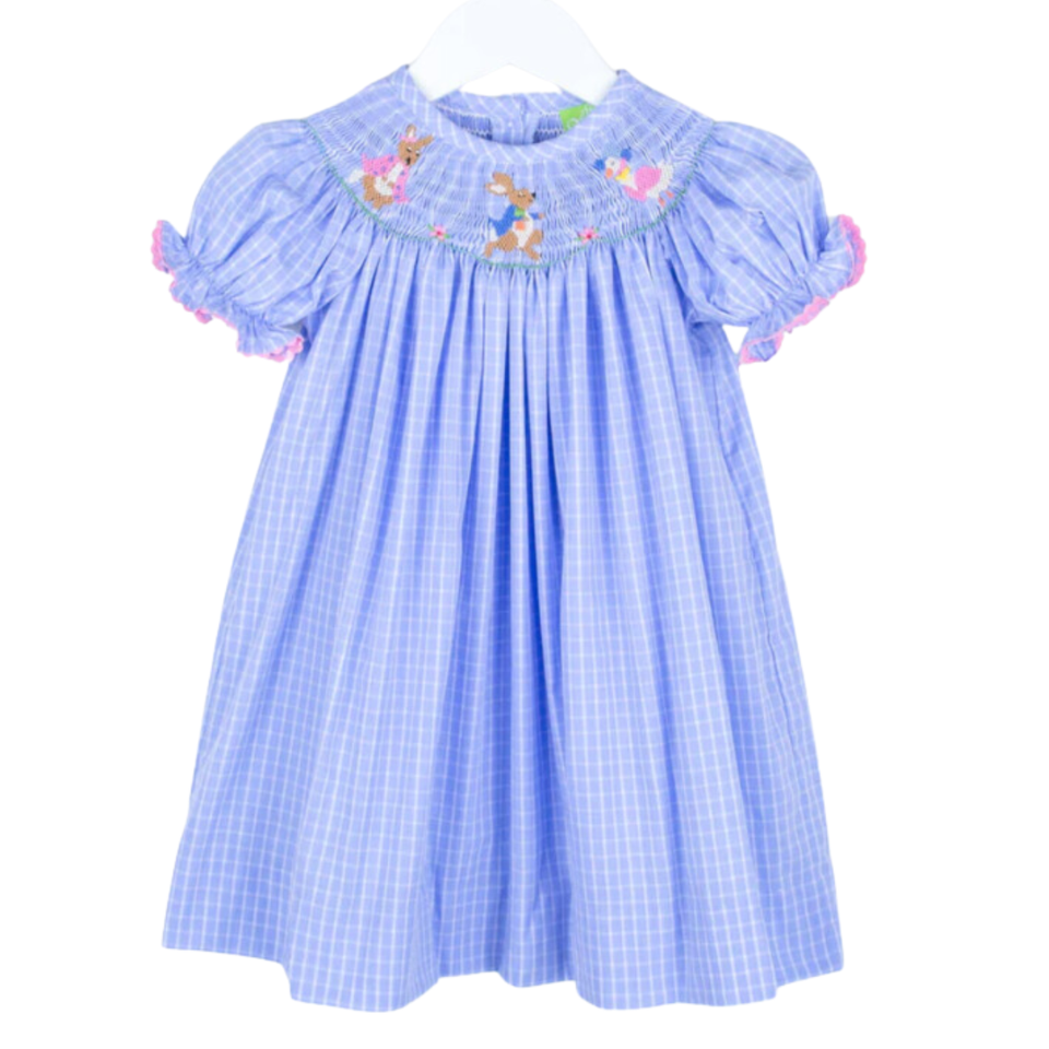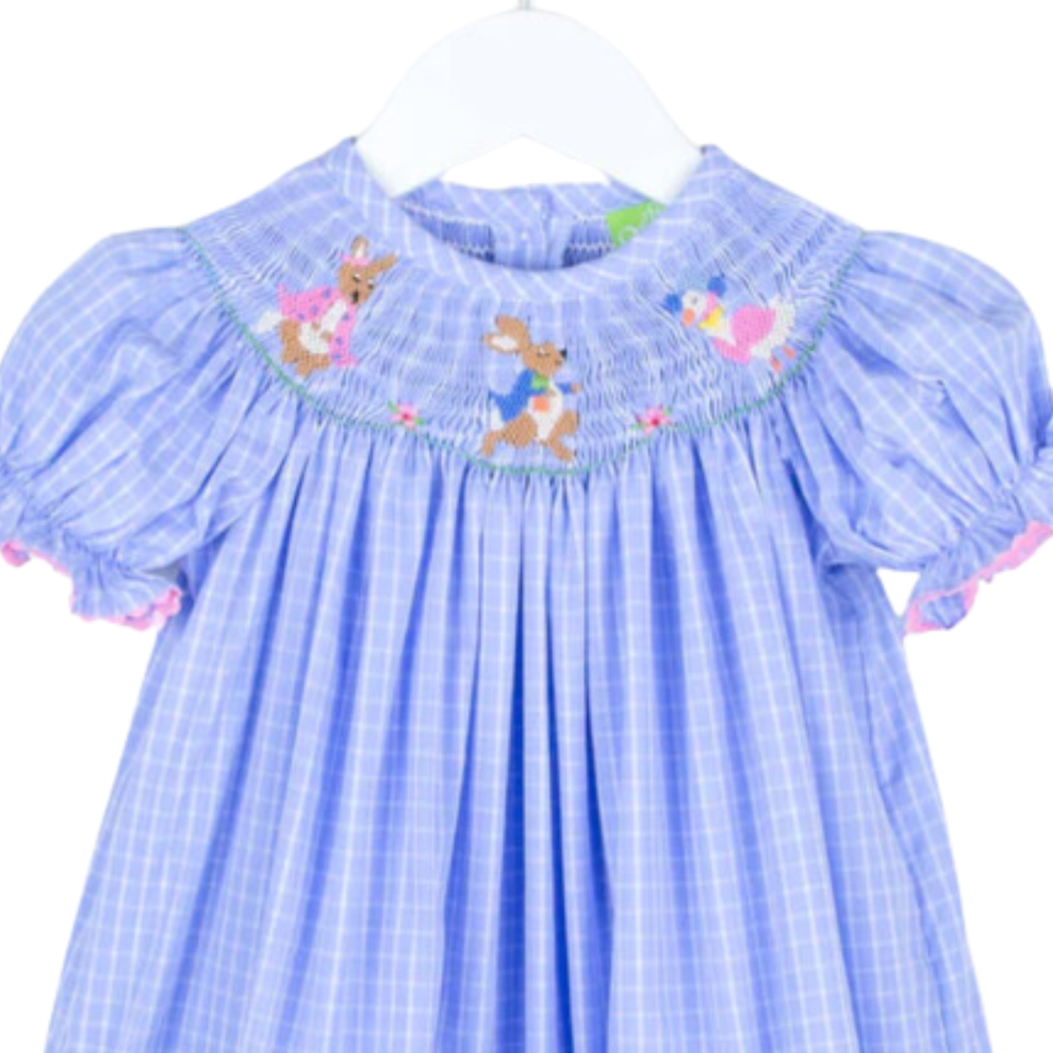 ชุดเดรสผ้าไม้ไผ่ปักลายกระต่ายกระต่ายกระต่ายสำหรับเด็กผู้หญิงแบบเวียดนามสำหรับวันอีสเตอร์งานตามสั่ง
