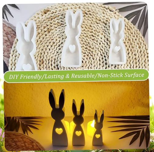 แม่พิมพ์ซิลิโคนอีสเตอร์3ชิ้นแม่พิมพ์เทียนซิลิโคนทนความร้อนพร้อมกระต่ายง่ายสำหรับงานฝีมือ DIY