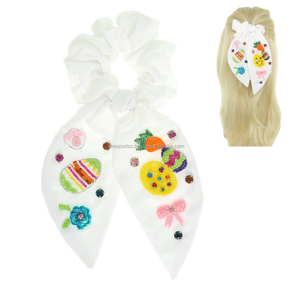 ชุดอีสเตอร์ผ้าพันคอดอกไม้ผูกผมผ้าคอตตอนและผ้าซาตินปักลายไข่สับปะรด