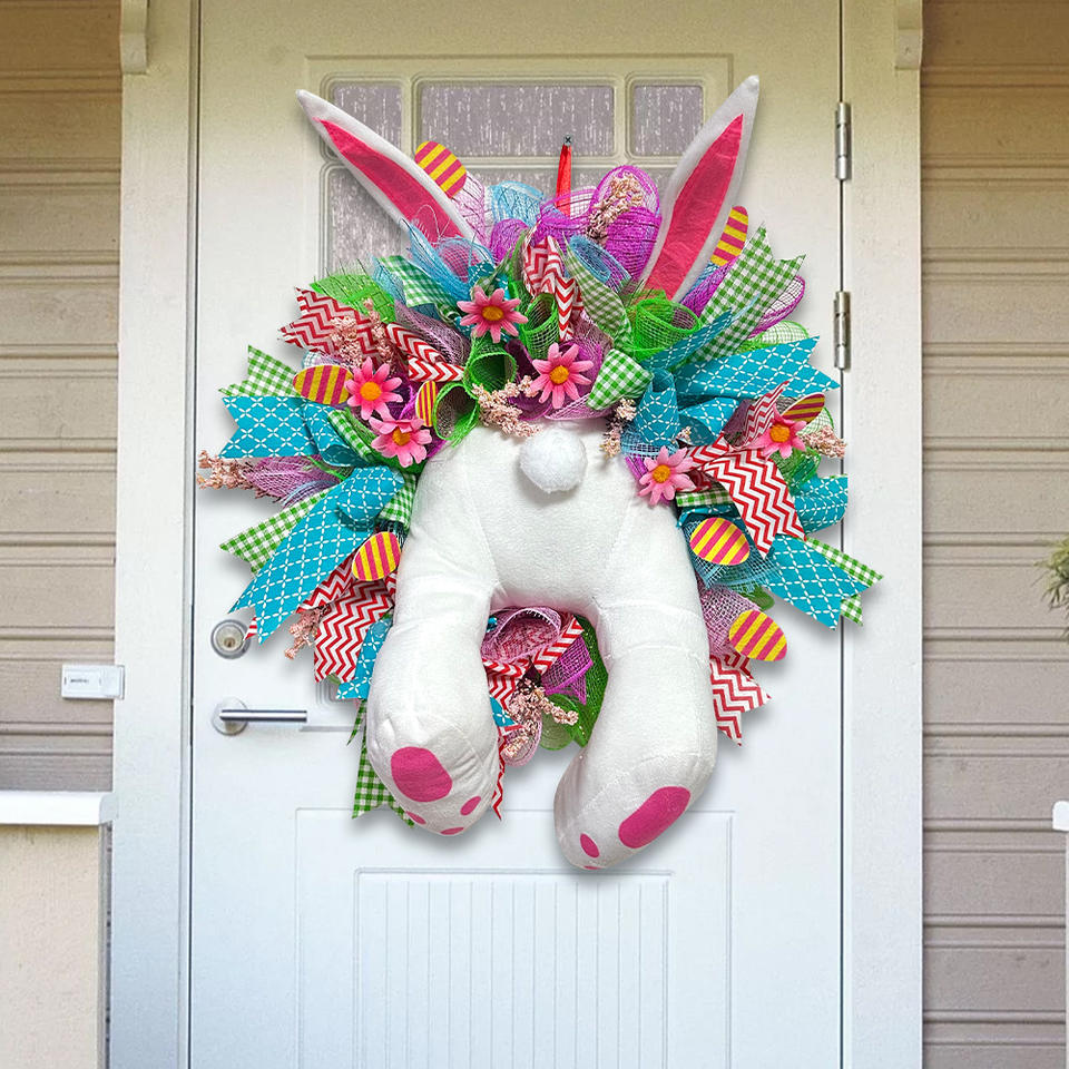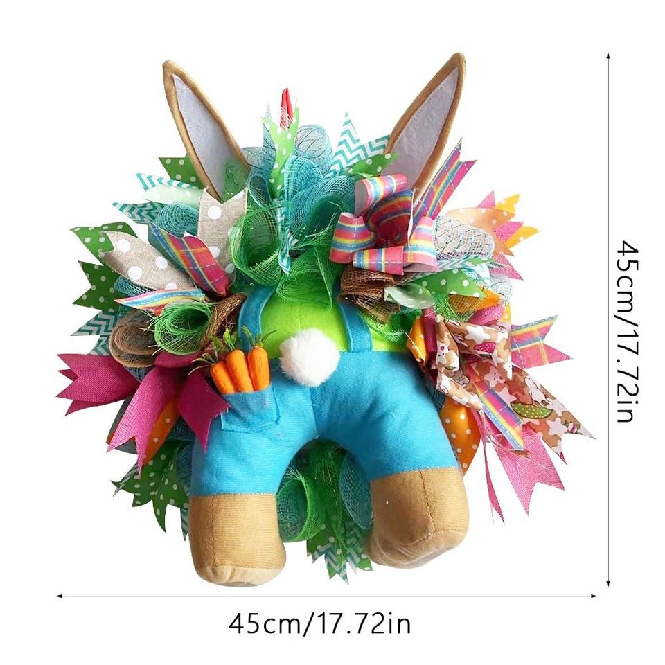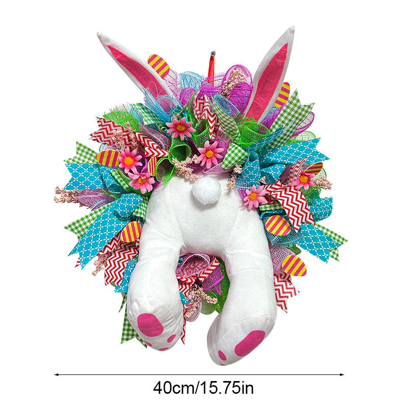 พวงหรีดกระต่ายขโมยไข่อีสเตอร์ พร้อมพวงมาลัยไม้กางเขน ของตกแต่งบ้าน งานแต่งงานฤดูใบไม้ผลิ รูปทรงกระต่ายการ์ตูน ของประดับตกแต่งงานปาร์ตี้