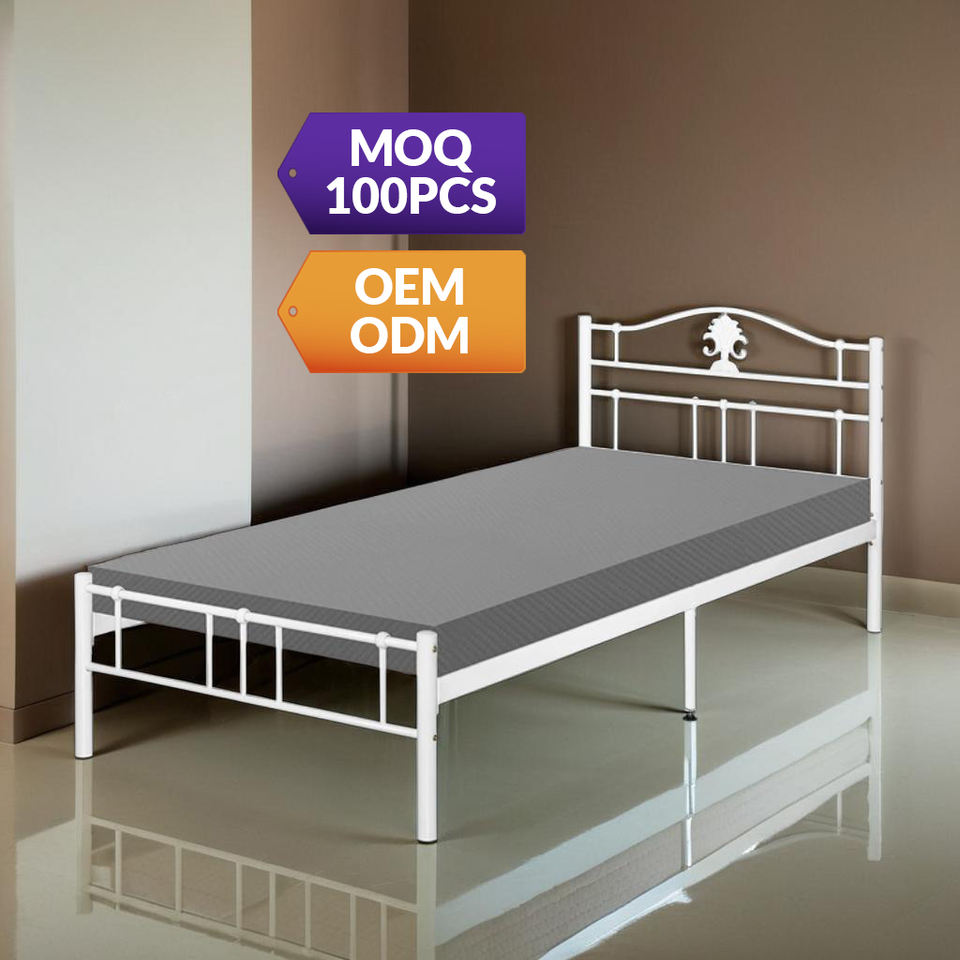 โครงเตียงเหล็กดัดเดี่ยวแบบทันสมัยพร้อมโครงสร้างท่อเหล็กไร้เสียงรบกวนสำหรับห้องนอนหรือหอพัก