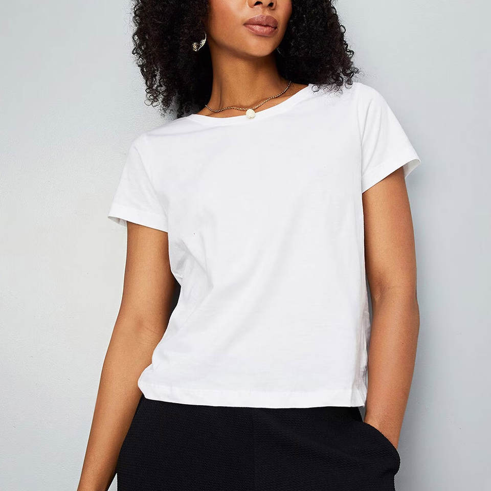 เสื้อยืดผู้หญิงแบบเรียบง่าย ดูแลง่าย สไตล์สบายๆ ใส่ได้ทุกวัน ดีไซน์เรียบง่ายเหนือกาลเวลา