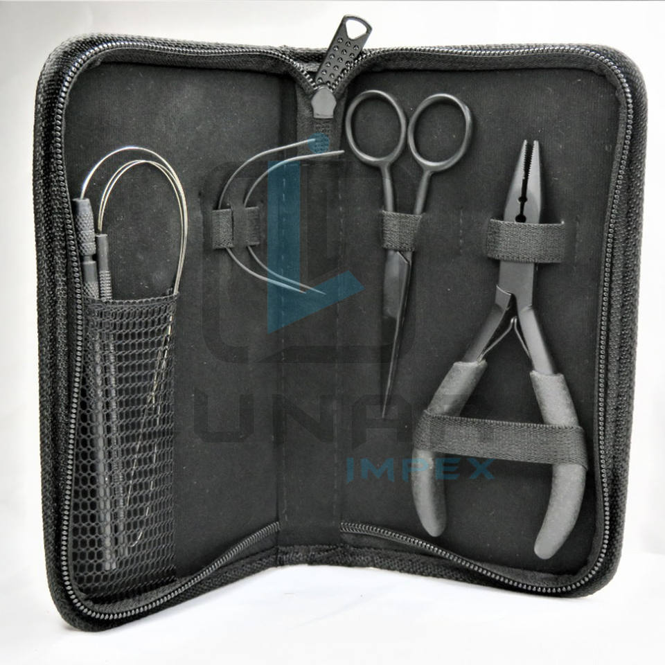 ชุดเครื่องมือต่อผมขนาดเล็กพกพาสะดวกในสีดําด้านพร้อมการติดฉลากโลโก้แบรนด์ที่กําหนดเอง