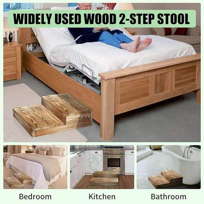 เก้าอี้ไม้ 2 ขั้น แข็งแรง ทนทาน พกพาสะดวก สำหรับเตียงสูงและใช้ในห้องนอน เหมาะสำหรับผู้สูงอายุ ทำจากไม้เนื้อแข็ง พร้อมที่จับในตัว