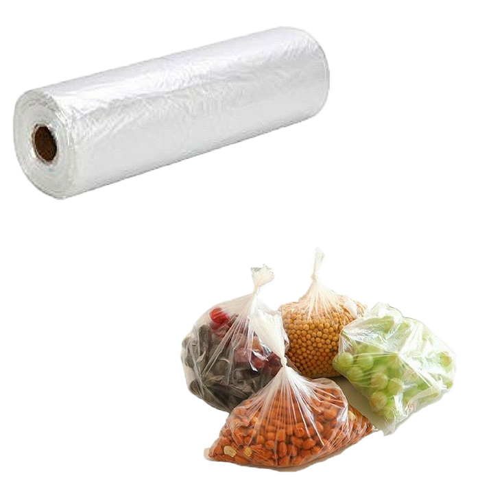ถุงพลาสติกรีไซเคิลแบบม้วนม้วนม้วนเก็บได้ง่ายทำจากพลาสติก PE แบนขนาดกำหนดได้เองเพื่อความสดใหม่สำหรับบรรจุภัณฑ์อาหารที่สะดวก